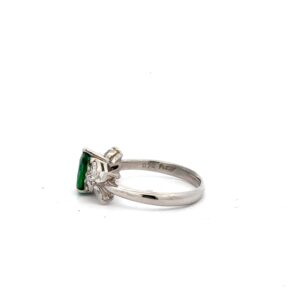 This lady’s estate ring features a .72 carat emerald, along with .43 ct. of diamonds. Mounted in 4.2 grams of platinum. Ring size 6.
