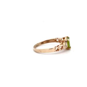 This lady’s estate ring features a 1.15-carat peridot. It is mounted in 2.5 grams of 10k yellow gold. Ring size 7.