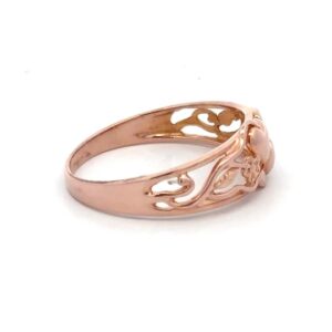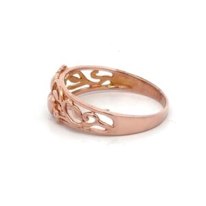 This estate ring is 2.7 grams of 14k rose gold. The ring size is 10.