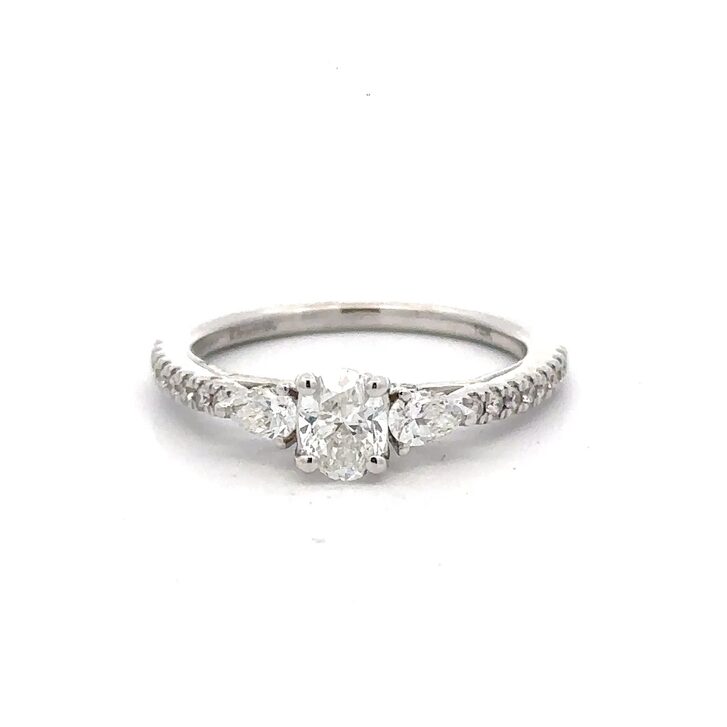 This lady’s estate ring features 1 carat total weight in diamonds, clarity VS2, and color G-H-I. They are mounted in a 3.7-gram 14k white gold ring size 7.