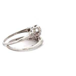 This estate ring set features .24 carat diamonds. It is mounted in 5.1 grams of 14k yellow gold. Ring size 9 1/4.