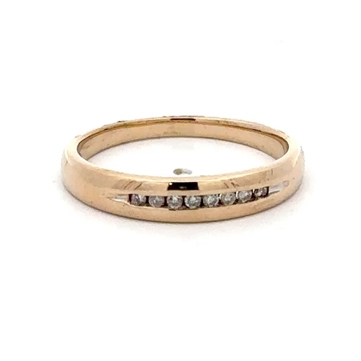 This lady’s estate ring features .08ct of diamonds. They are mounted in 2.3 grams of 10k yellow gold. Ring size 7.