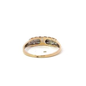 This lady’s estate ring features .03 ct. of diamonds. Mounted in 1.4 grams of 14k yellow & white gold. Ring size 4.75
