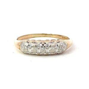 This lady’s estate ring features .03 ct. of diamonds. Mounted in 1.4 grams of 14k yellow & white gold. Ring size 4.75