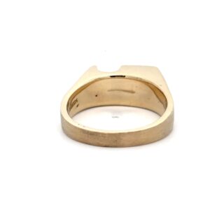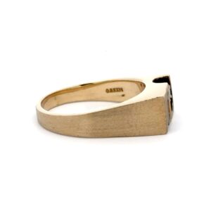 This men’s estate ring has a .15 ct. Diamond. Clarity VS2, Color H. 14k yellow gold. Ring size 13.5. Weighs 15.8 grams.
