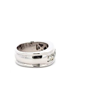 This estate mens ring features 1.90 carats of natural diamonds, clarity I, and color H-I-J. They are mounted in a heavy 18.3-gram, 14k white gold ring size 10.