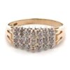 This estate ring features .06 carat diamonds, clarity I and color H-I. It is mounted in 2.1 grams of 14k white gold. Ring size 9.
