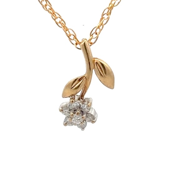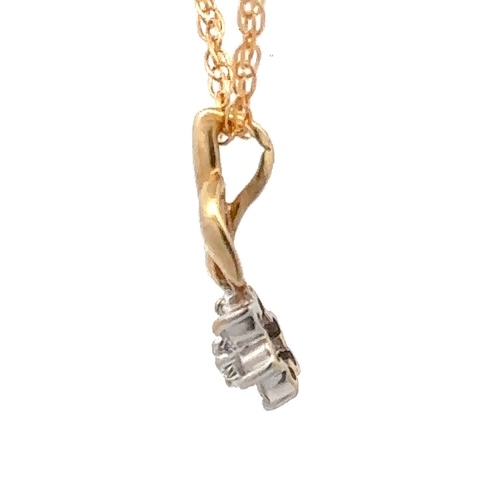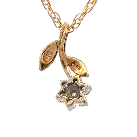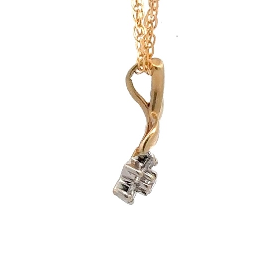 This estate pendant features a .18ct diamond. It is mounted in a .9 gram 14k setting.