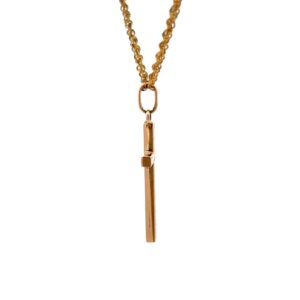 This estate pendant features a cross made of 1.3 grams of 18k gold. It is about 1 1/4 inch tall overall.