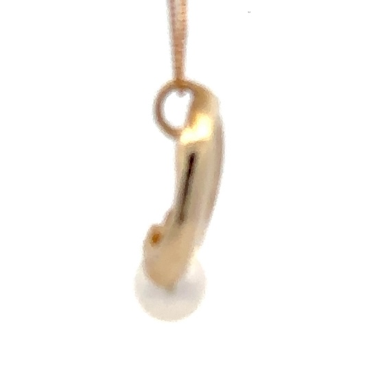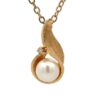 This estate pendant features a 5.8mm pearl. It has .02ct diamond. It is mounted in a 3.2 gram 14k setting. It is approximately 15mm tall and 7mm wide. This piece comes with an 18″ 14k box chain.