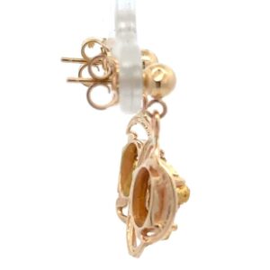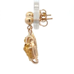 These dangling gold nugget earrings are expertly crafted with natural gold nuggets carefully placed and soldered onto 14k yellow gold setting. Because we are using natural gold nuggets, each pair of earrings are one-of-a-kind. The earrings measure 20mm tall and 10mm wide.