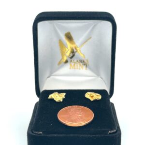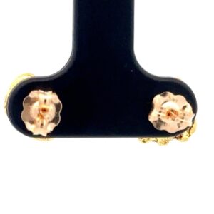 These gold nugget stud earrings are expertly crafted with natural gold nuggets carefully placed and soldered onto 14k yellow gold posts, along with 14k earring backs. Because we are using natural gold nuggets, each pair of earrings are one-of-a-kind.