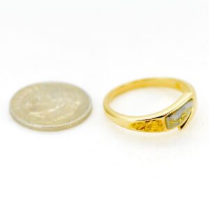 “Gold Bearing Quartz” is a natural gemstone that is usually mined deep underground. Finding snowy white quartz with visible veins of pure gold is extremely difficult. Most of the time, gold mined in quartz is found in microscopic amounts, not at all visible. This very rare stone is cut into slabs, revealing the gold vein. They are then cut, shaped, polished and mounted into a 14k yellow gold mounting. Because of the veining of the gold, each piece of jewelry is one of a kind! We make this rare stone into wonderful pieces for both men and women in rings, bracelets, earrings, cuff links, and anything else you might imagine.
