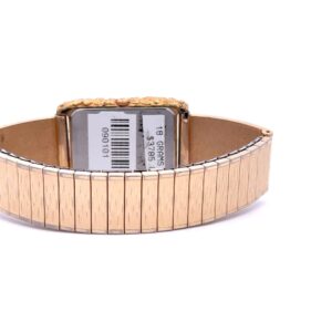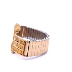 This gorgeous Alaskan Seiko gold nugget watch is covered with Alaskan gold nuggets and is a nice, sleek design that is classy while not being too flashy or gaudy. It is nice and slim and has a low profile while you are wearing it. This watch face is on a nice stretch watch band. The inserts are fully covered in Alaskan gold nuggets.