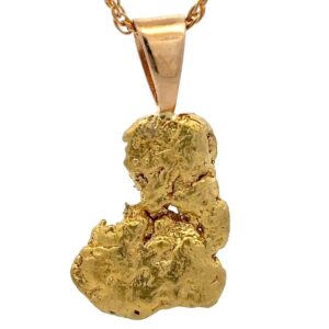 On any given day, local gold miners will come in to our shop throughout the year with the gold nuggets they mined that season. We look through their stash and choose the very best nuggets to make into pendants. These are natural pieces of placer gold? which means they are mined from the rivers and streams around Alaska. Otherwise known as the Klondike. Finding gold nuggets in their natural state is very rare. In fact, gold nuggets make up only 2% of all gold that is found. These nuggets themselves will vary in purity from about 75% to 95% pure gold, or 18k-22k. Due to the fact that these pieces are completely natural, other minerals can sometimes be?mixed in such as silver and platinum.