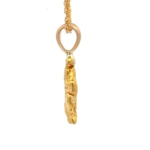 On any given day, local gold miners will come in to our shop throughout the year with the gold nuggets they mined that season. We look through their stash and choose the very best nuggets to make into pendants. These are natural pieces of placer gold? which means they are mined from the rivers and streams around Alaska. Otherwise known as the Klondike. Finding gold nuggets in their natural state is very rare. In fact, gold nuggets make up only 2% of all gold that is found. These nuggets themselves will vary in purity from about 75% to 95% pure gold, or 18k-22k. Due to the fact that these pieces are completely natural, other minerals can sometimes be?mixed in such as silver and platinum.
