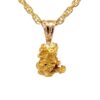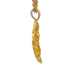 On any given day, local gold miners will come in to our shop throughout the year with the gold nuggets they mined that season. We look through their stash and choose the very best nuggets to make into pendants. These are natural pieces of placer gold? which means they are mined from the rivers and streams around Alaska. Otherwise known as the Klondike. Finding gold nuggets in their natural state is very rare. In fact, gold nuggets make up only 2% of all gold that is found. These nuggets themselves will vary in purity from about 75% to 95% pure gold, or 18k-22k. Due to the fact that these pieces are completely natural, other minerals can sometimes be?mixed in such as silver and platinum.