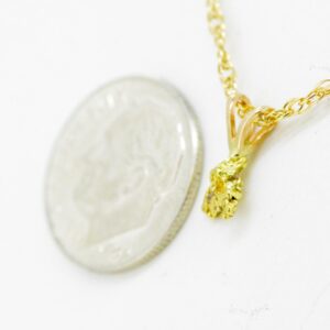 This .3 DWT Alaskan gold nugget pendant weighs .3 DWT and features a classic 14k split bail. The pendant comes with a gold plated chain in a nice box. It shows up ready to give to someone special, even if that special someone is you.