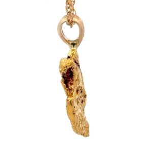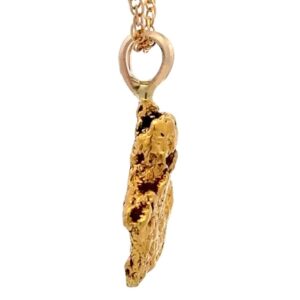 On any given day, local gold miners will come in to our shop throughout the year with the gold nuggets they mined that season. We look through their stash and choose the very best nuggets to make into pendants. These are natural pieces of placer gold? which means they are mined from the rivers and streams around Alaska. Otherwise known as the Klondike. Finding gold nuggets in their natural state is very rare. In fact, gold nuggets make up only 2% of all gold that is found. These nuggets themselves will vary in purity from about 75% to 95% pure gold, or 18k-22k. Due to the fact that these pieces are completely natural, other minerals can sometimes be?mixed in such as silver and platinum.