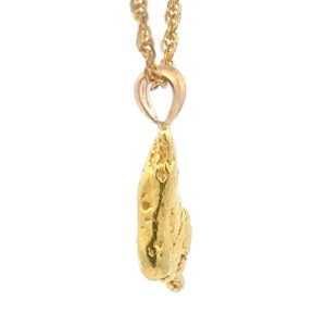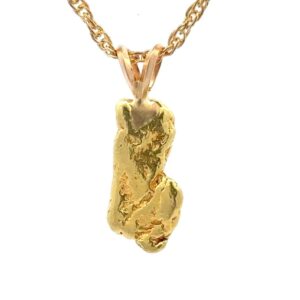 On any given day, local gold miners will come in to our shop throughout the year with the gold nuggets they mined that season. We look through their stash and choose the very best nuggets to make into pendants. These are natural pieces of placer gold? which means they are mined from the rivers and streams around Alaska. Otherwise known as the Klondike. Finding gold nuggets in their natural state is very rare. In fact, gold nuggets make up only 2% of all gold that is found. These nuggets themselves will vary in purity from about 75% to 95% pure gold, or 18k-22k. Due to the fact that these pieces are completely natural, other minerals can sometimes be?mixed in such as silver and platinum.