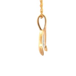 The pendant features a natural gemstone known as “Gold Bearing Quartz,” typically mined from deep underground. In most cases, gold found in quartz exists in microscopic amounts, making it virtually invisible. However, this pendant boasts an extraordinary rarity as it showcases a very scarce stone that is first cut into slabs, revealing the precious gold vein. Subsequently, it is skillfully cut, shaped, polished, and mounted into a 14k gold setting. Embrace the allure of this remarkable Gold Bearing Quartz pendant and celebrate the natural beauty of this exceptional gemstone.