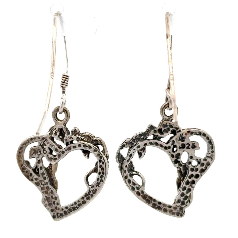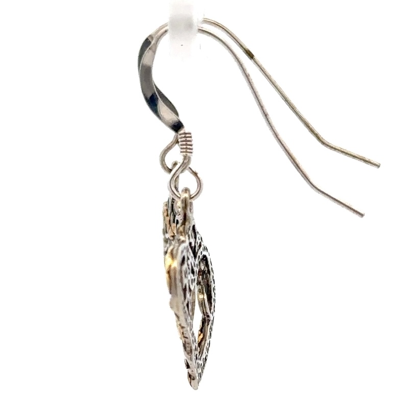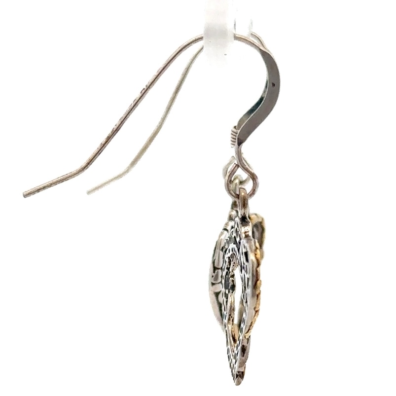 Sterling Silver & Gold Nugget Floral Heart Dangling Earrings 517006