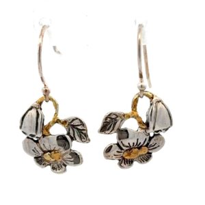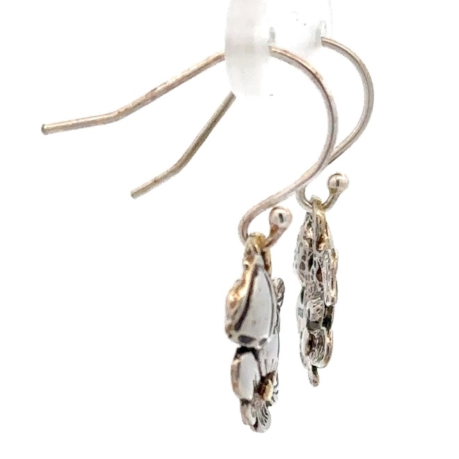 Sterling Silver & Gold Nugget Flower Dangling Earrings 075022
