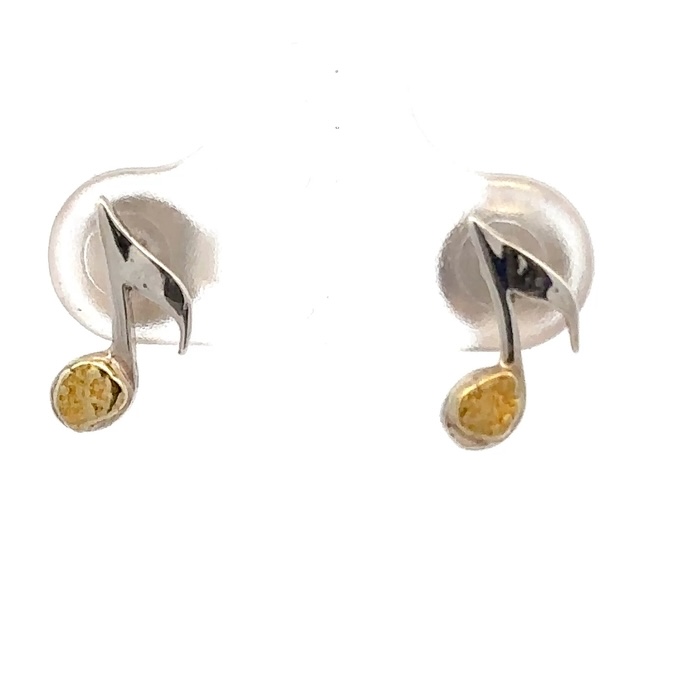 Sterling Silver & Gold Nugget Music Note Earrings 517009