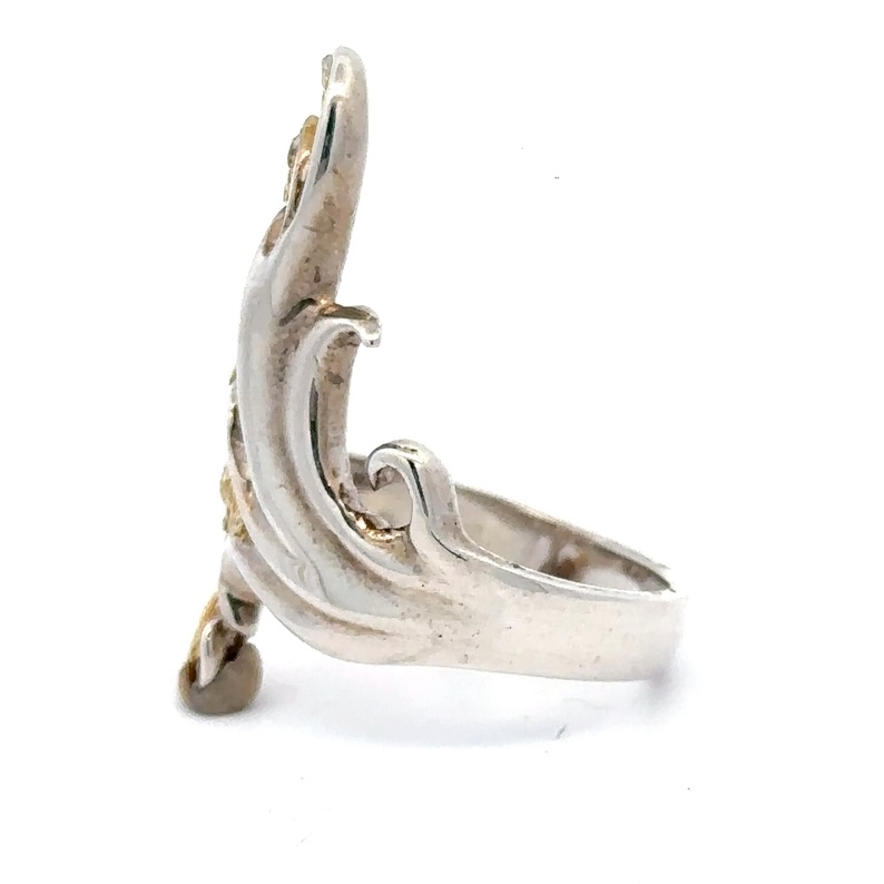 Sterling Silver & Gold Nugget Ladies Ring RL469NSS