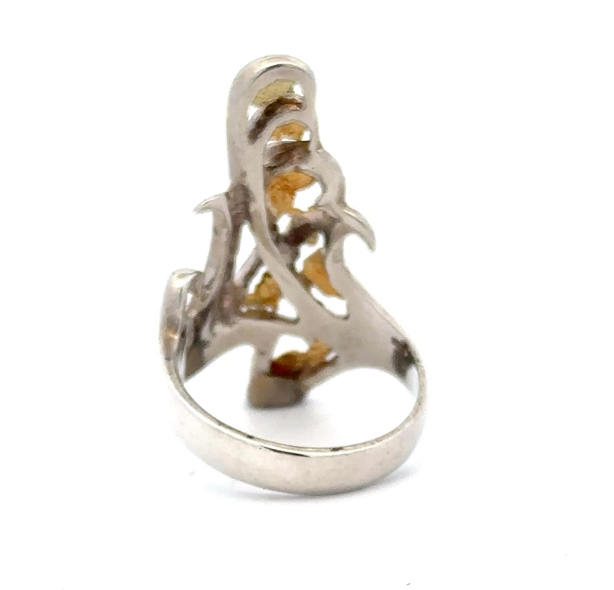 Sterling Silver & Gold Nugget Gold Quartz Ladies Ring RL232QSS