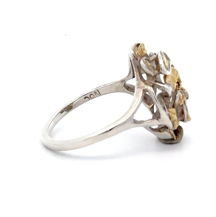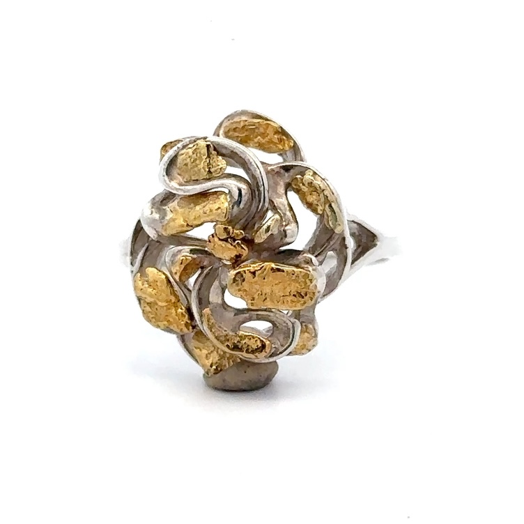 Sterling Silver & Gold Nugget Ladies Ring RL464SS