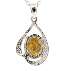Citrine Gold Nugget Howling Wolf Sterling Silver Ladies Pendant