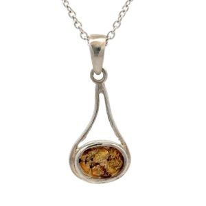 This pendant, gold nugget & silver features natural gold nuggets soldered into an oval-shaped setting. The pendant is about 7mm wide and 19mm tall (including bail). This piece weighs 2.9 grams. Mounting it in silver helps show off the rich color of the gold against the silver background, and it also keeps the price lower. These gold nuggets make very interesting, one-of-a-kind jewelry. They will definitely be conversation starters. Because the nuggets are natural, the nugget shapes will vary; the photo shown is a sample piece. It comes with a silver-plated chain and is mounted in a gift box. Photos are enlarged to display detail.