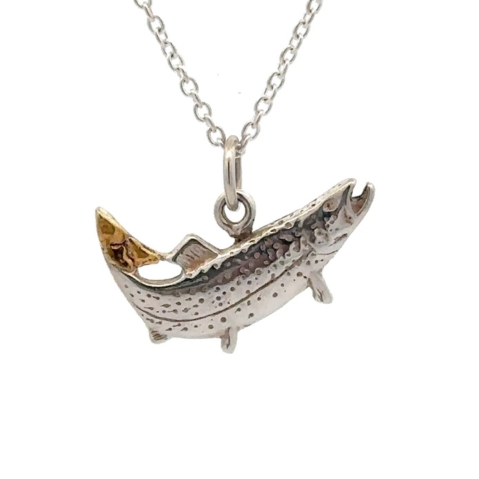 Sterling Silver & Gold Nugget Salmon Pendant C018SS