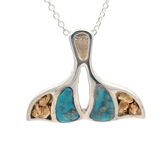 Sterling Silver & Gold Nugget Turquoise Whale Tail PWT25NTSS