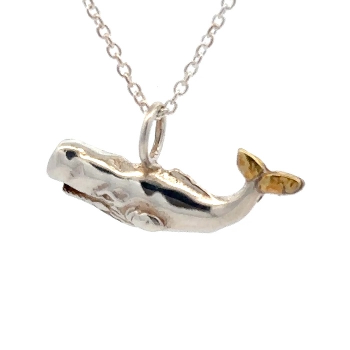 Sterling Silver & Gold Nugget Whale Pendant N060