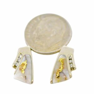 Gold Bearing Quartz is a natural gemstone that is usually mined deep underground. Finding snowy white quartz with visible veins of pure gold is extremely difficult. Most of the time, gold mined in quartz is found in microscopic amounts, not at all visible. Because of the veining of the gold, each piece of jewelry is one of a kind! We make this stone into wonderful pieces for both men and women, rings, bracelets, earrings, cuff links, and anything else you might imagine. We can even design a custom piece for you.