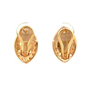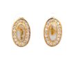These beautiful oval gold quartz earrings are expertly crafted in 14k yellow gold. The smooth, polished surface brilliantly reflects light, capturing attention from every angle. The photos showcase enlarged details of this piece. These earrings have diamond halos around the stones.
