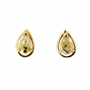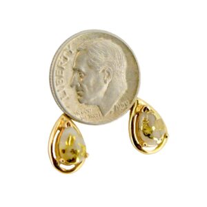 Gold Bearing Quartz is a natural gemstone that is usually mined deep underground. Finding snowy white quartz with visible veins of pure gold is extremely difficult. Most of the time, gold mined in quartz is found in microscopic amounts, not at all visible. This very rare stone is cut into slabs, revealing the gold vein, then cut, shaped, polished and mounted into a 14k gold mounting. Because of the veining of the gold, each piece of jewelry is one of a kind! We make this stone into wonderful pieces for both men and women in rings, bracelets, earrings, cuff links, and anything else you might imagine. We can even design a custom piece for you. Quartz stone size is 6.5x 5 mm.