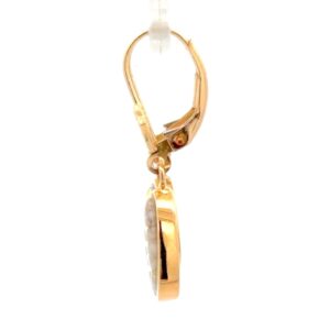 These beautiful 14k leverback gold quartz earrings are expertly crafted in 14k yellow gold. The smooth, polished surface brilliantly reflects light, capturing attention from every angle. The photos showcase enlarged details of this piece.