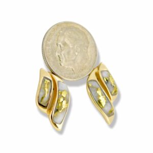 “Gold Bearing Quartz” is a natural gemstone that is usually mined deep underground. Finding snowy white quartz with visible veins of pure gold is extremely difficult. Most of the time, gold mined in quartz is found in microscopic amounts, not at all visible. This very rare stone is then cut into slabs, revealing the gold vein, then cut, shaped, polished and mounted into a 14k gold mounting. Because of the veining of the gold, each piece of jewelry is one of a kind! We make this stone into wonderful pieces for both men and women, rings, bracelets, earrings, cuff links, and anything else you might imagine. We can even design a custom piece for you.