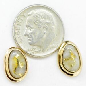 The earrings feature a natural gemstone known as “Gold Bearing Quartz,” typically mined from deep underground. In most cases, gold found in quartz exists in microscopic amounts, making it virtually invisible. However, these earrings boast an extraordinary rarity as it showcases a very scarce stone that is first cut into slabs, revealing the precious gold vein. Skilled artisans cut, shape, polish, and mount the gold quartz into a 14k gold setting. Embrace the allure of these remarkable Gold Bearing Quartz earrings and celebrate the natural beauty of this exceptional gemstone.