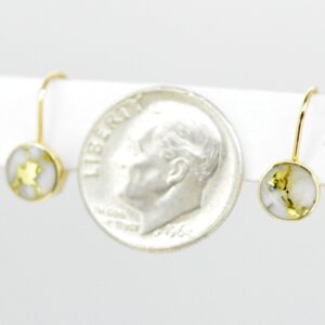 The earrings feature a natural gemstone known as “Gold Bearing Quartz,” typically mined from deep underground. In most cases, gold found in quartz exists in microscopic amounts, making it virtually invisible. However, these earrings boast an extraordinary rarity as it showcases a very scarce stone that is first cut into slabs, revealing the precious gold vein. Skilled artisans cut, shape, polish, and mount the gold quartz into a 14k gold setting. Embrace the allure of these remarkable Gold Bearing Quartz earrings and celebrate the natural beauty of this exceptional gemstone.