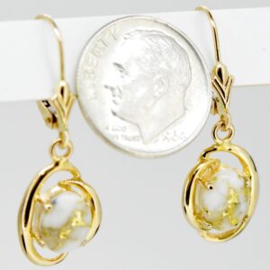 “Gold Bearing Quartz” is a natural gemstone that is usually mined deep underground. Finding snowy white quartz with visible veins of pure gold is extremely difficult. Most of the time, gold mined in quartz is found in microscopic amounts, not at all visible. This very rare stone is cut into slabs, revealing the gold vein, then cut, shaped, polished and mounted into a 14k gold mounting. Because of the veining of the gold, each piece of jewelry is one of a kind! We make this stone into wonderful pieces for both men and women in rings, bracelets, earrings, cuff links, and anything else you might imagine. We can even design a custom piece for you.