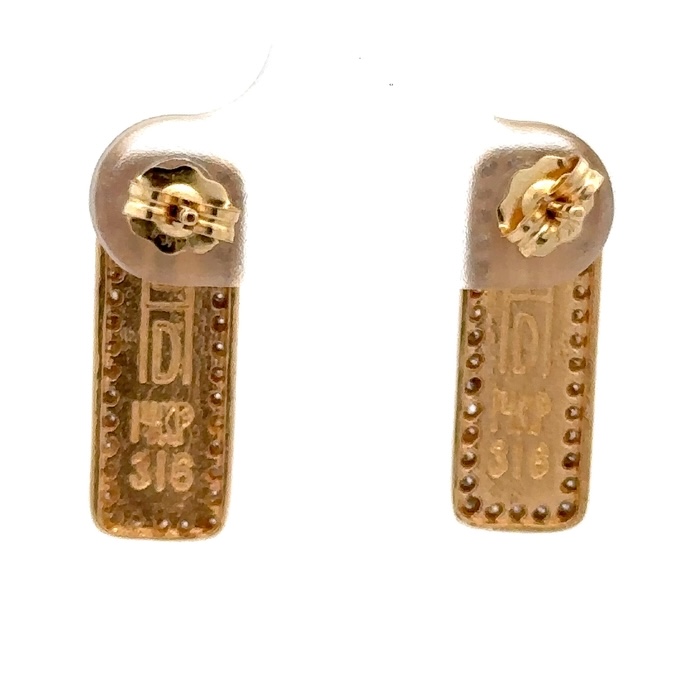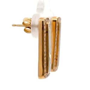 These beautiful rectangular gold quartz earrings are expertly crafted in 14k yellow gold. The smooth, polished surface brilliantly reflects light, capturing attention from every angle. The photos showcase enlarged details of this piece. The earrings measure 7x19mm.