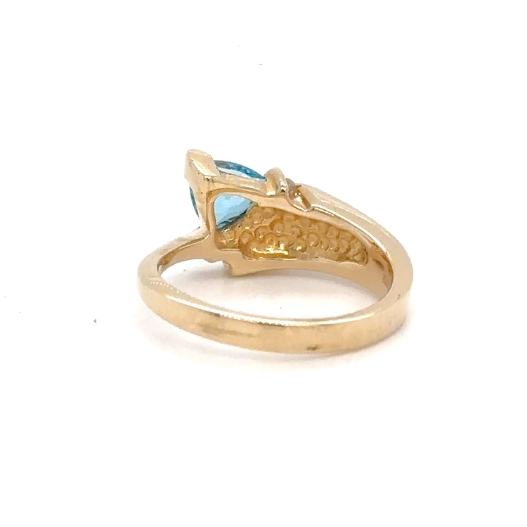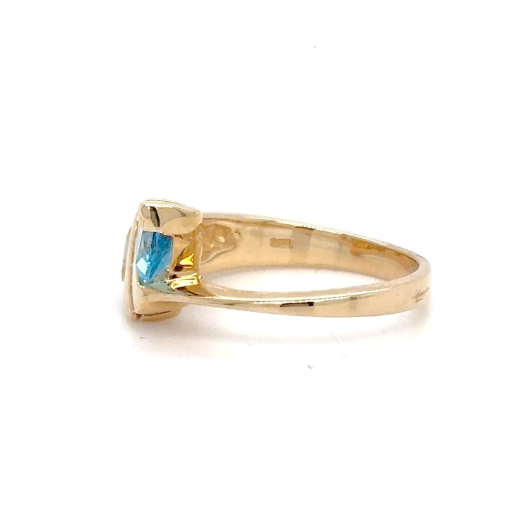 This beautiful square blue topaz gold quartz ring is expertly crafted in 14k yellow gold. Total topaz carat weight is .12. This ring features a row of diamonds.