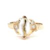 This lady’s gold quartz ring is expertly crafted in 14k yellow gold. This piece features a row of diamonds holding the stone. The smooth, polished surface brilliantly reflects light, capturing attention from every angle. The photos showcase enlarged details of this piece.