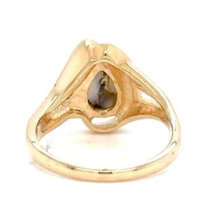 The ring features a natural gemstone known as “Gold Bearing Quartz,” typically mined from deep underground. In most cases, gold found in quartz exists in microscopic amounts, making it virtually invisible. However, this ring boasts an extraordinary rarity as it showcases a very scarce stone that is first cut into slabs, revealing the precious gold vein. Skilled artisans cut, shape, polish, and mount the gold quartz into a 14k gold setting. Embrace the allure of this remarkable Gold Bearing Quartz ring and celebrate the natural beauty of this exceptional gemstone.