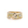 This lady’s gold quartz ring is expertly crafted in 14k yellow gold. This piece features an inlaid row of diamonds. The smooth, polished surface brilliantly reflects light, capturing attention from every angle. The photos showcase enlarged details of this piece.