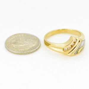 “Gold Bearing Quartz” is a natural gemstone that is usually mined deep underground. Finding snowy white quartz with visible veins of pure gold is extremely difficult. Most of the time, gold mined in quartz is found in microscopic amounts, not at all visible. This very rare stone is cut into slabs, revealing the gold vein. They are then cut, shaped, polished and mounted into a 14k yellow gold mounting. Because of the veining of the gold, each piece of jewelry is one of a kind! We make this rare stone into wonderful pieces for both men and women in rings, bracelets, earrings, cuff links, and anything else you might imagine.